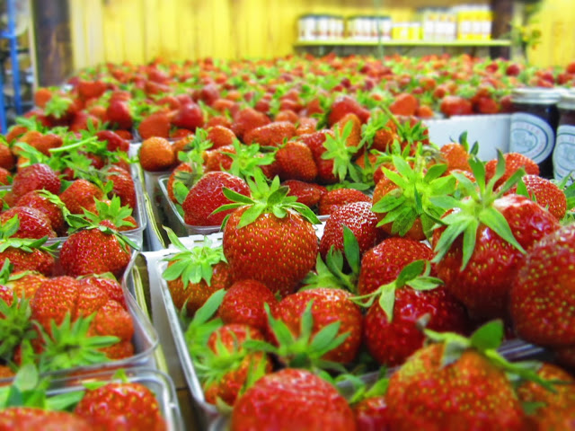 This is one of those things that makes me really like living in Kentucky. A short drive over the bridge to Starlight, Indiana puts in the middle of Huber’s Family Farm. They do seasonal “u-pick” and right now, is Strawberry season!