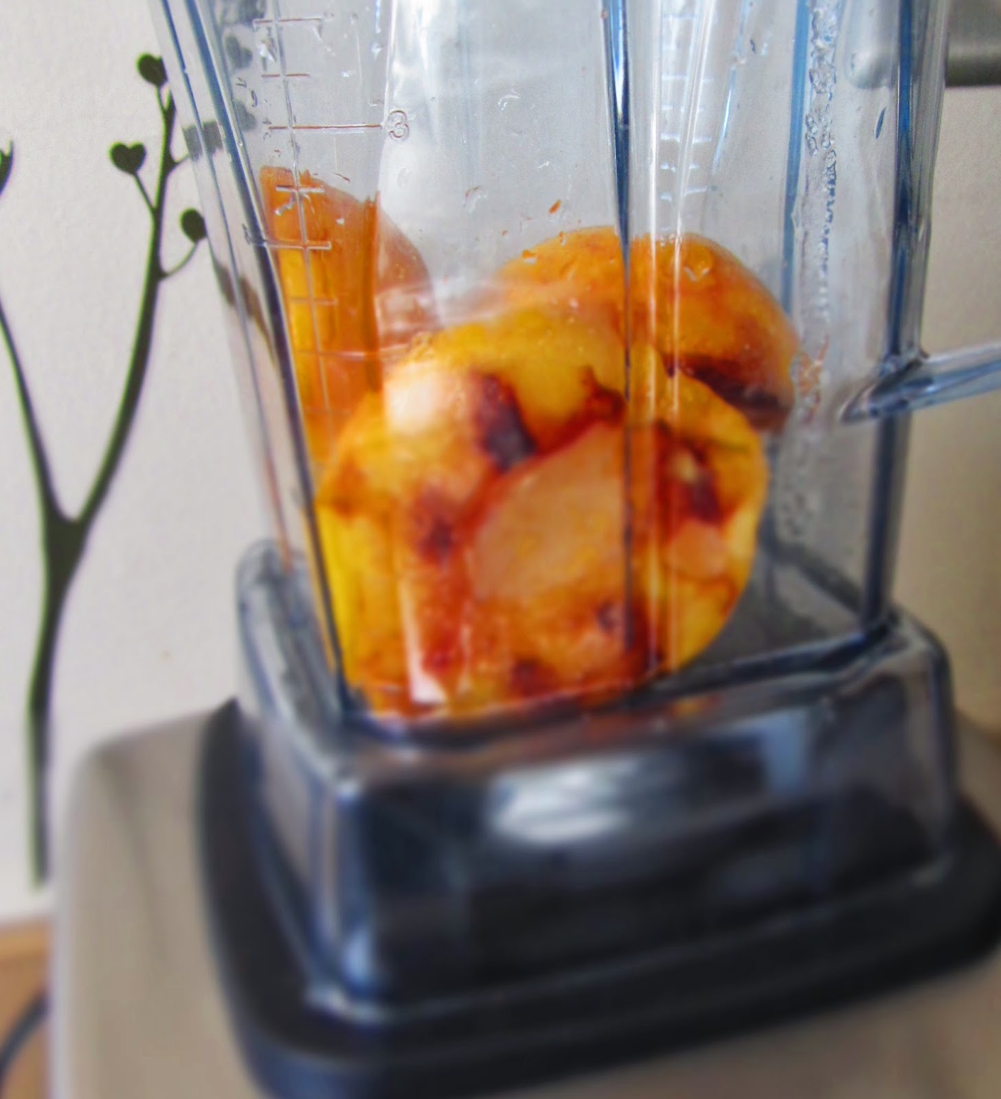 Let peaches cool and puree in a blender with 1 teaspoon fresh lemon juice and 1 table spoon of white sugar. This took my vitamix about 6 seconds.