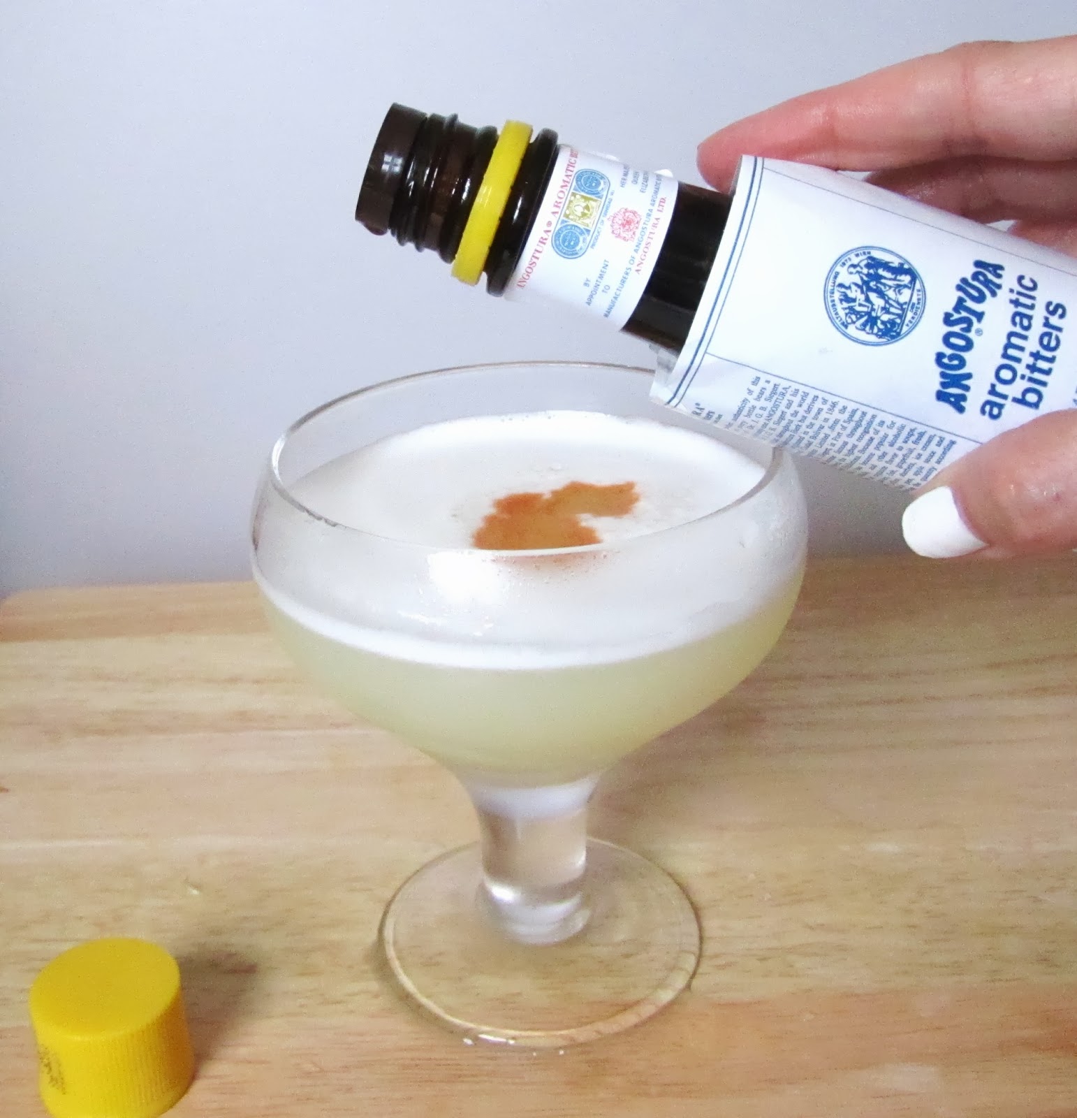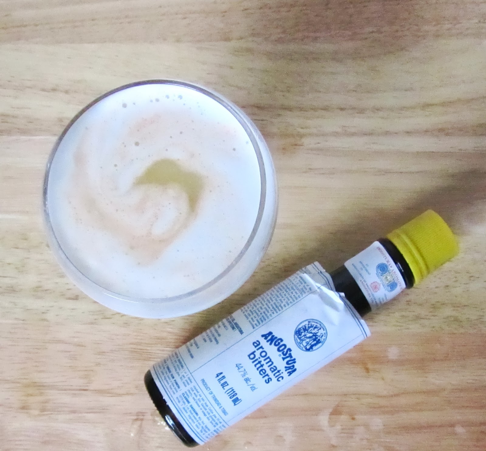 Fill a shaker with 5-6 ice cubes, and layer ingredients in order listed. Shake for a solid 30 seconds and strain into a chilled fizz cocktail glass. Top with 2-3 drops of bitters.
