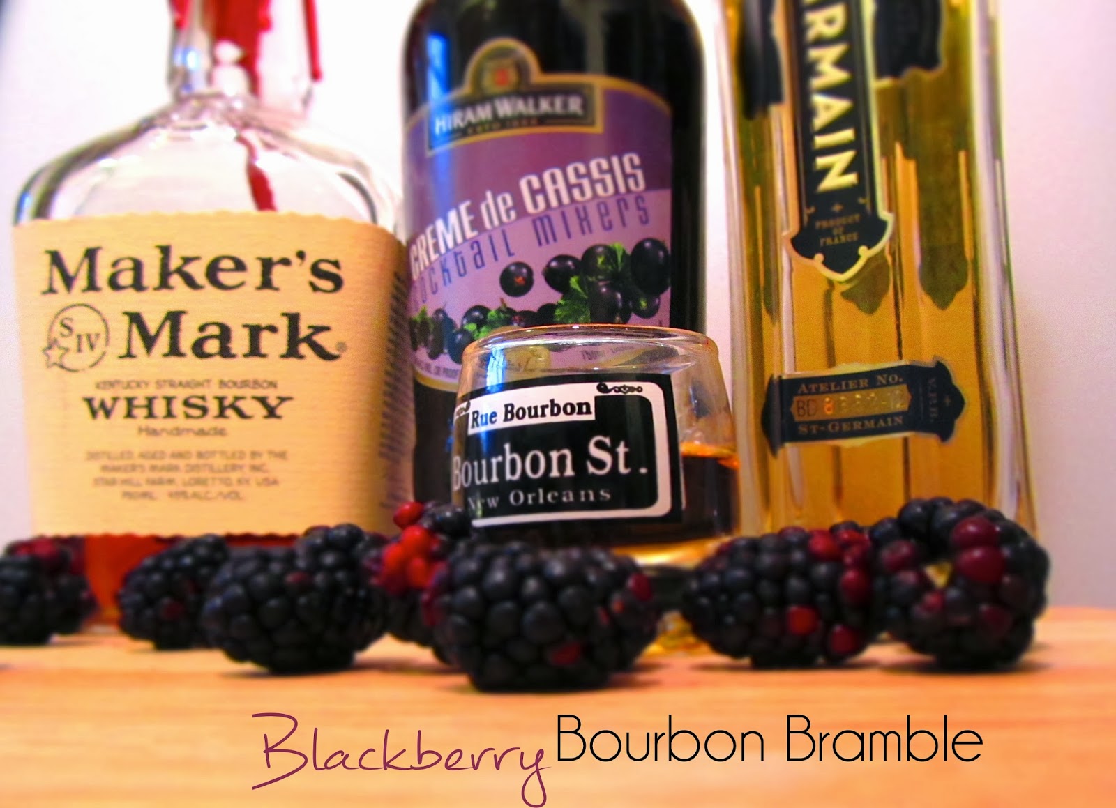 I decided to search for cocktails including Bourbon and St. Germain, thinking the floral of the elderflower would enhance the earthy notes of the Bourbon. I came across this little gem on saveur. While in Wholefoods, I also happened upon some beautiful blackberries from a local farm and thought, voila! Local berries, local bourbon. Done & done.