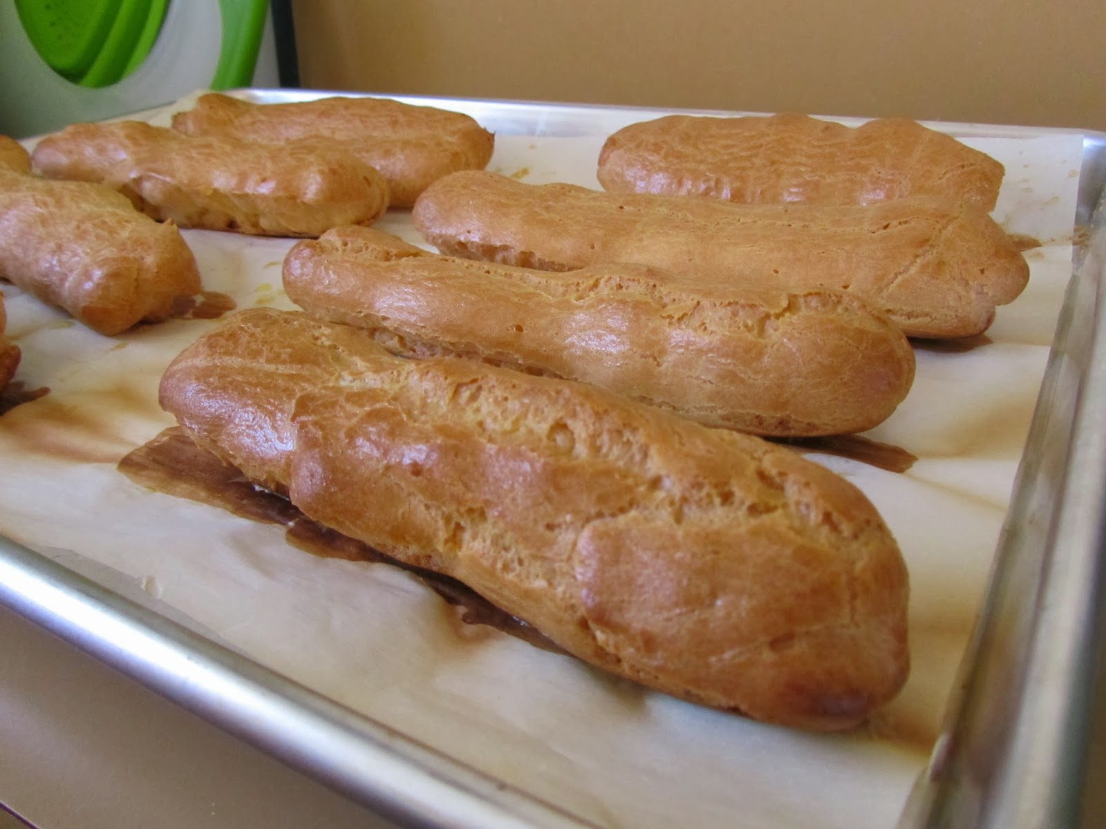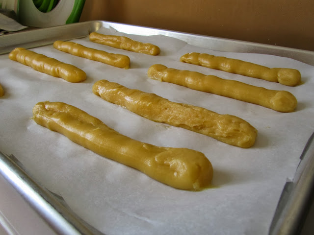 science of baking …when cooked again in the oven, the dough puffs up into hollow forms of whatever you piped. (in this case empty tubes to hold custard!) voila!